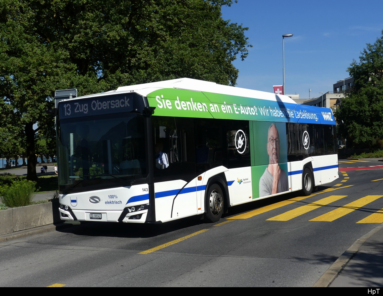 Zugerland - Solaris Urbino 12 Electric Nr.143  ZG 88143 unterwegs auf der Linie 13 in Zug am 15.07.2023