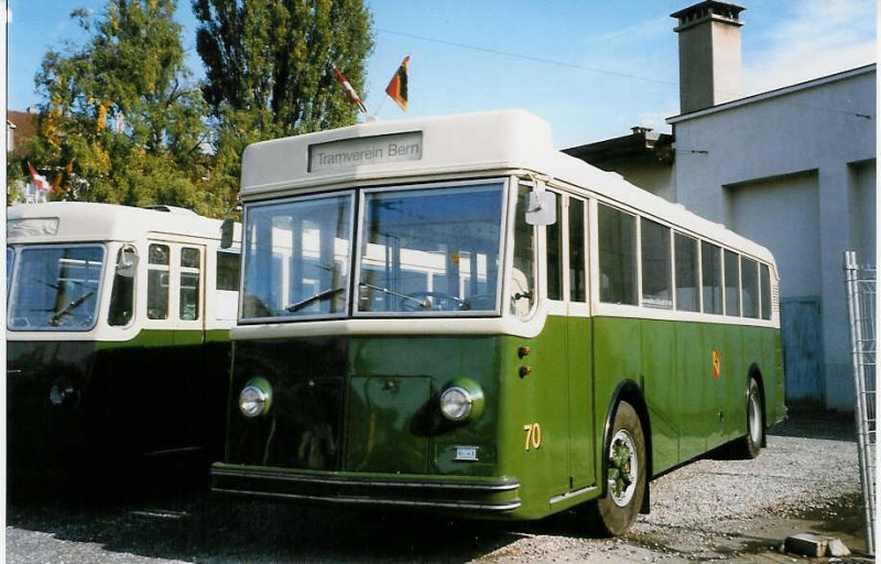 Aus dem Archiv: SVB Bern (Tramverein) Nr. 70 Saurer/Gangloff am 10. Oktober 1998 Bern, Depot Burgernziel (Jubiläum 25 Jahre Tramverein Bern)