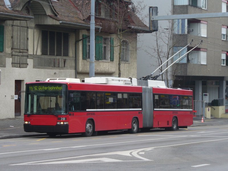 Bern Mobil - NAW Swisstrolleybus Nr.20 eingeteilt auf der Linie 11/12 Güterbahnhof am 08.03.2008