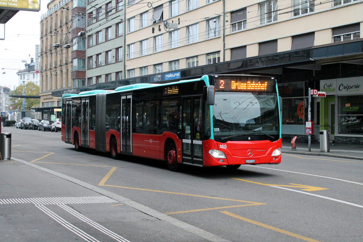 VB/TPB Nr. 165 (Mercedes Citaro C2 O530G) am 7.11.2021 zwischen den Haltestellen Guisanplatz und Bahnhof