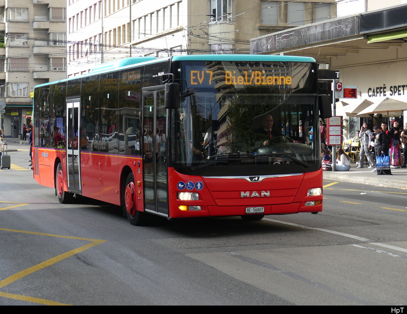 SBB - Bahnersatz für den Bhf. Biel am 30.09.2023 und 01.10.2023 da der Bhf. Biel nicht via SBB und BLS erreichbar war (Nur via asm (BTI) die als einzige Bahn den Bahnhof Biel anfahren konnte) Hier ein Bus von Funicar mit ein MAN Lion`s City BE 56807 der zwischen Biel und Le Landeron hin und her Fuhren, beim Halt vor dem Bhf. Biel
