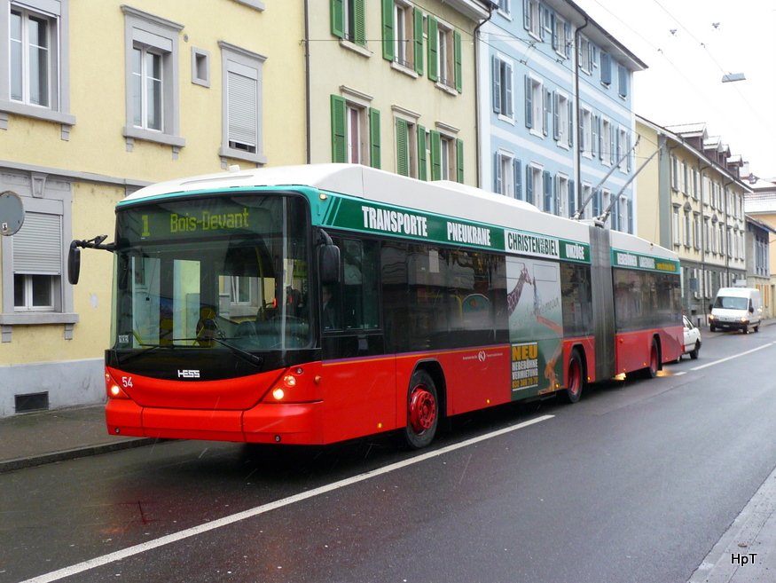 VB Biel - Hess-Swisstrolleybus BGT-N2C Nr.54 unterwegs auf der Linie 1 in der Stadt Biel am 29.01.2010