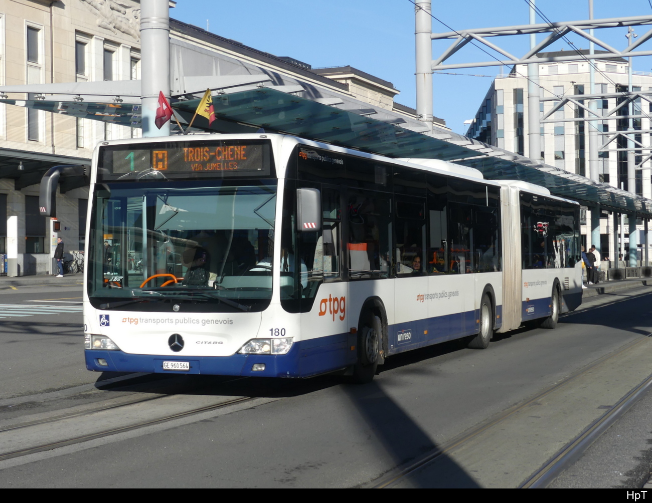 tpg - Mercedes Citaro  Nr.180 unterwegs in der Stadt Genf am 01.01.2023
