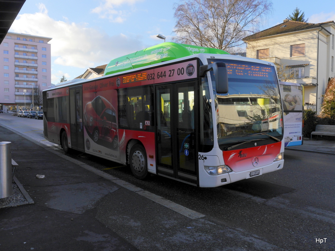BGU - Mercedes Citaro Nr.26 SO 128514 unterwegs auf der Linie 23 vor dem Bahnhof Grenchen Süd am 04.01.2015