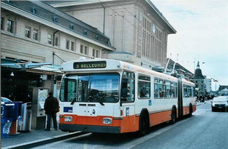 TL Lausanne Nummer 890 Saurer/Hess Trolleybus (ex TPG Genève Nr. 656) am 15. März 2008 Lausanne, Bahnhof