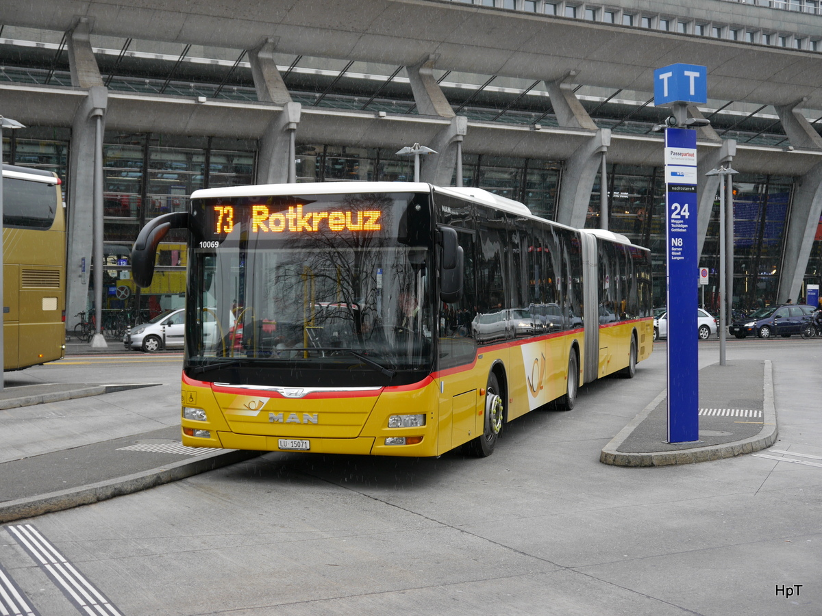 Postauto - MAN Lion`s City LU 15071 bei den Bushaltestellen vor dem Bahnhof Luzern am 03.02.2018
