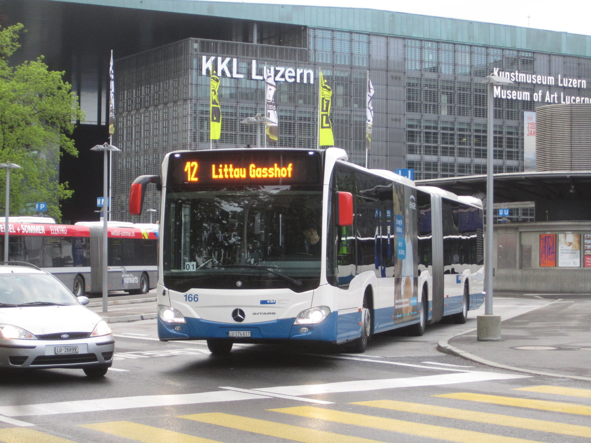 vbl Nr. 166 (Mercedes Citaro C2 O530G) am 22.5.2019 beim Bhf. Luzern