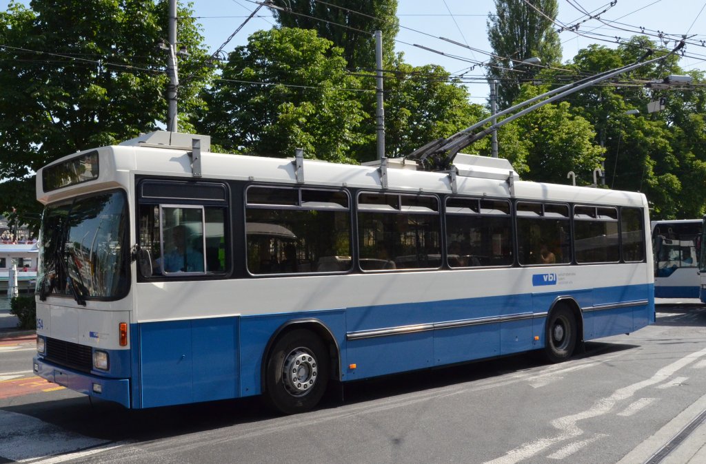 VBL - Hess Trolleybus Nr.413 bei den Haltestellen vor dem Bhf. Luzern am 07.06.2025