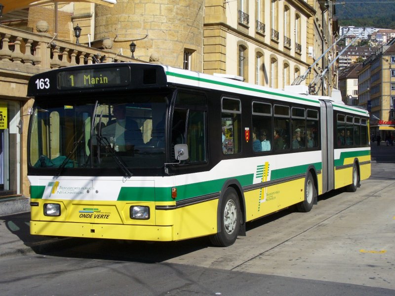 TN - FBW/Hess Trolleybus Nr.163 bei der Haltestelle Place Pury am 19.09.2007