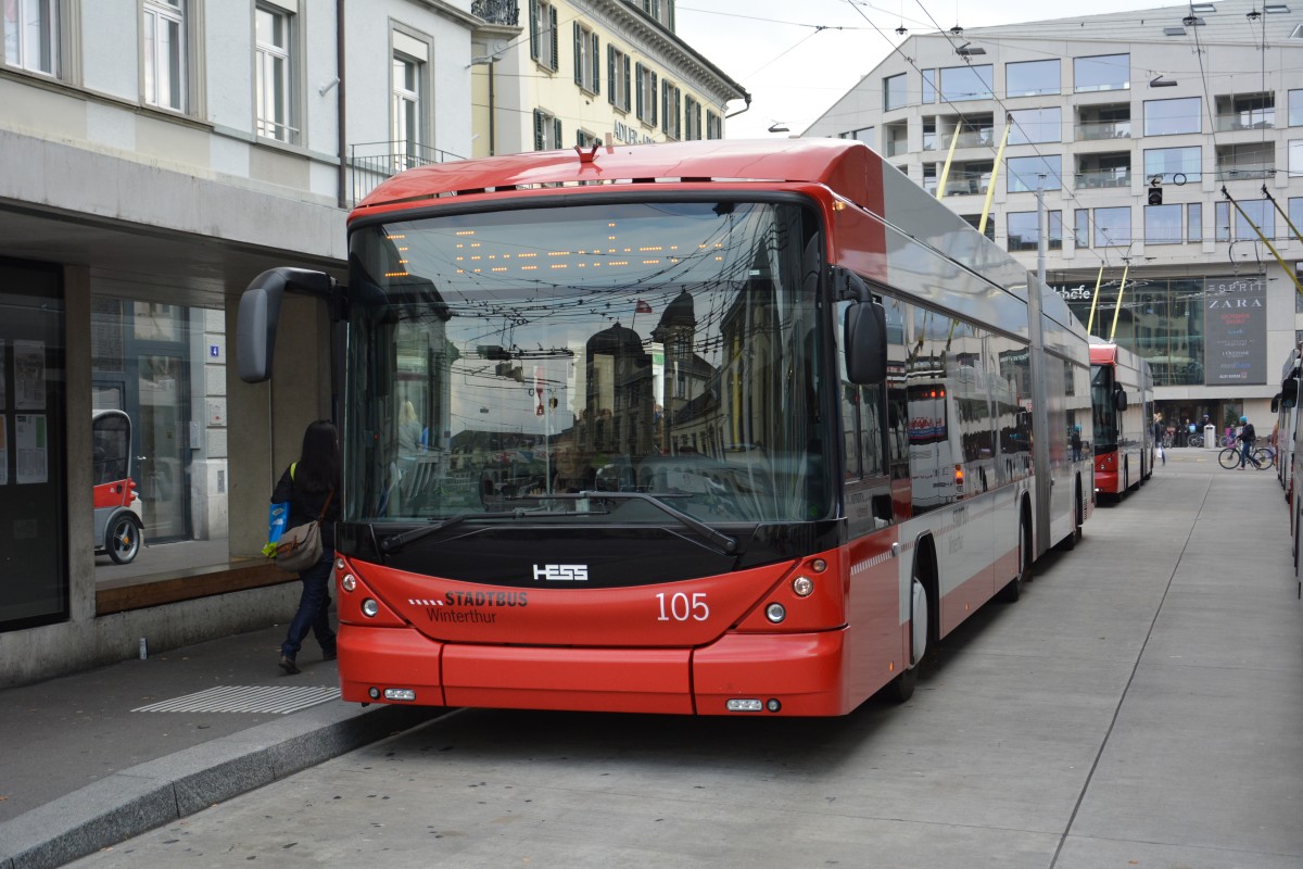 Dieser Hess O-Bus "105" wurde am 14.10.2015 am Bahnhof in Winterthur gesehen.