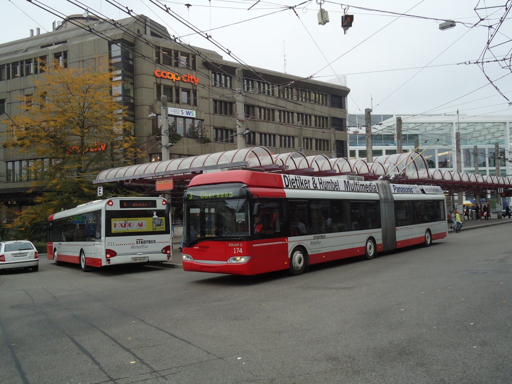 SW Winterthur Nr. 174 Solaris Gelenktrolleybus am 13. Oktober 2010 Winterthur, Hauptbahnhof