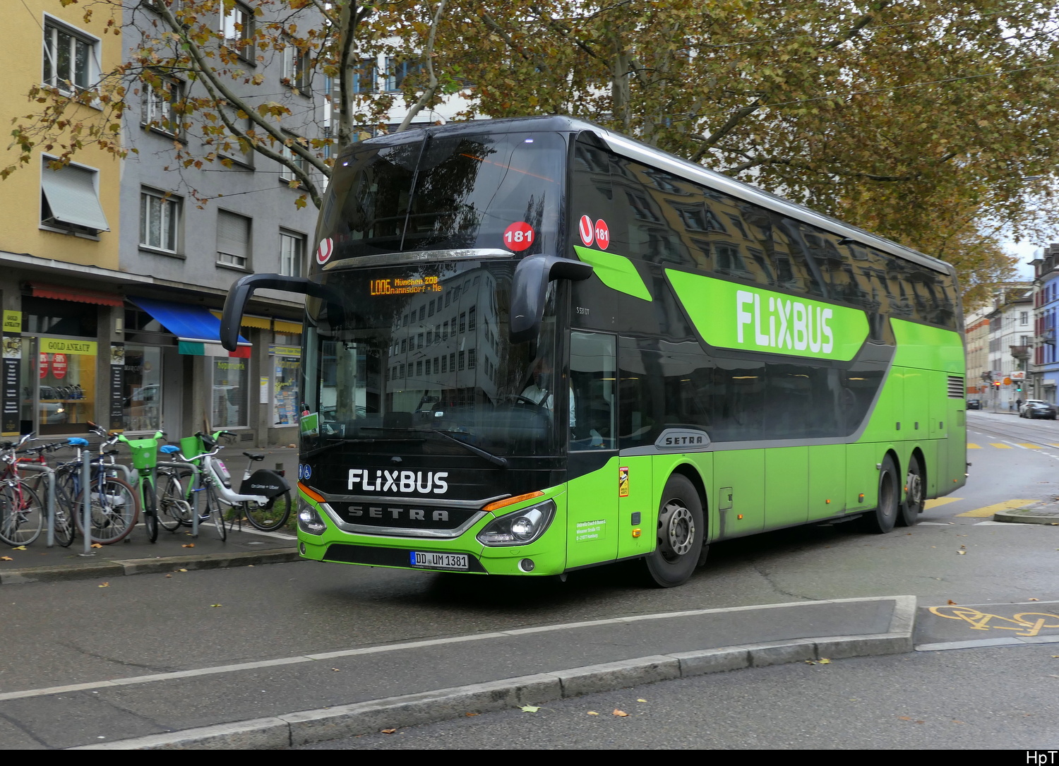 Flixbus - -Setra S 531 DT  DD.UM 1381 unterwegs in der Stadt Zürich am 26.10.2025