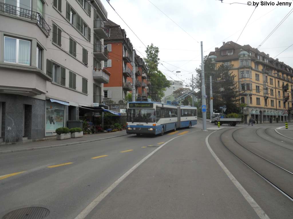 VBZ Nr. 121 (Mercedes O405GTZ) am 29.4.2011 beim Hegibachplatz.