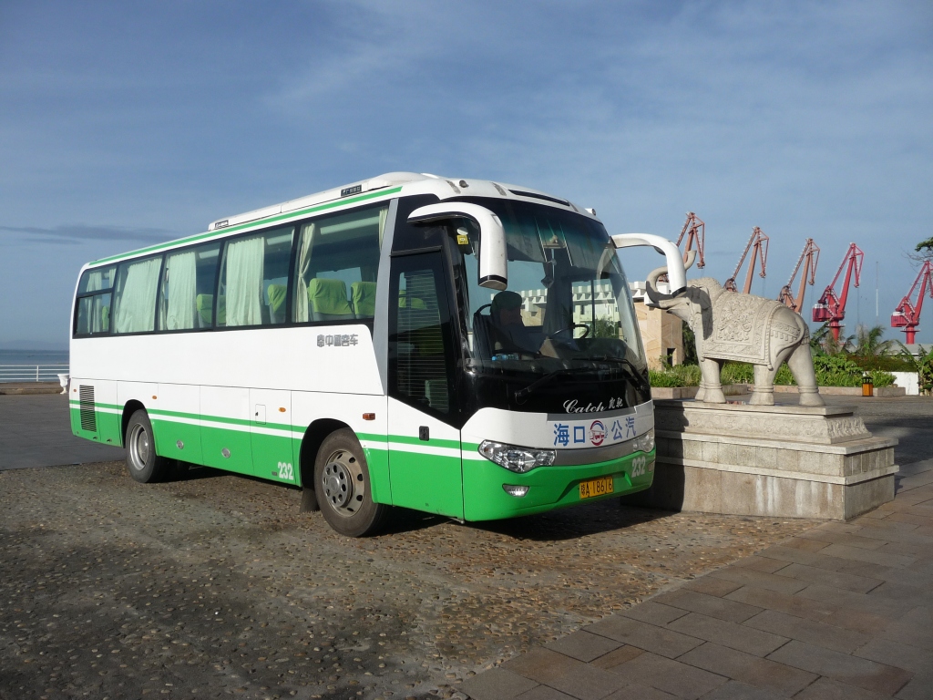 Treffen der Elefanten: Chinesischer Reisebus auf einem Hotelparkplatz.