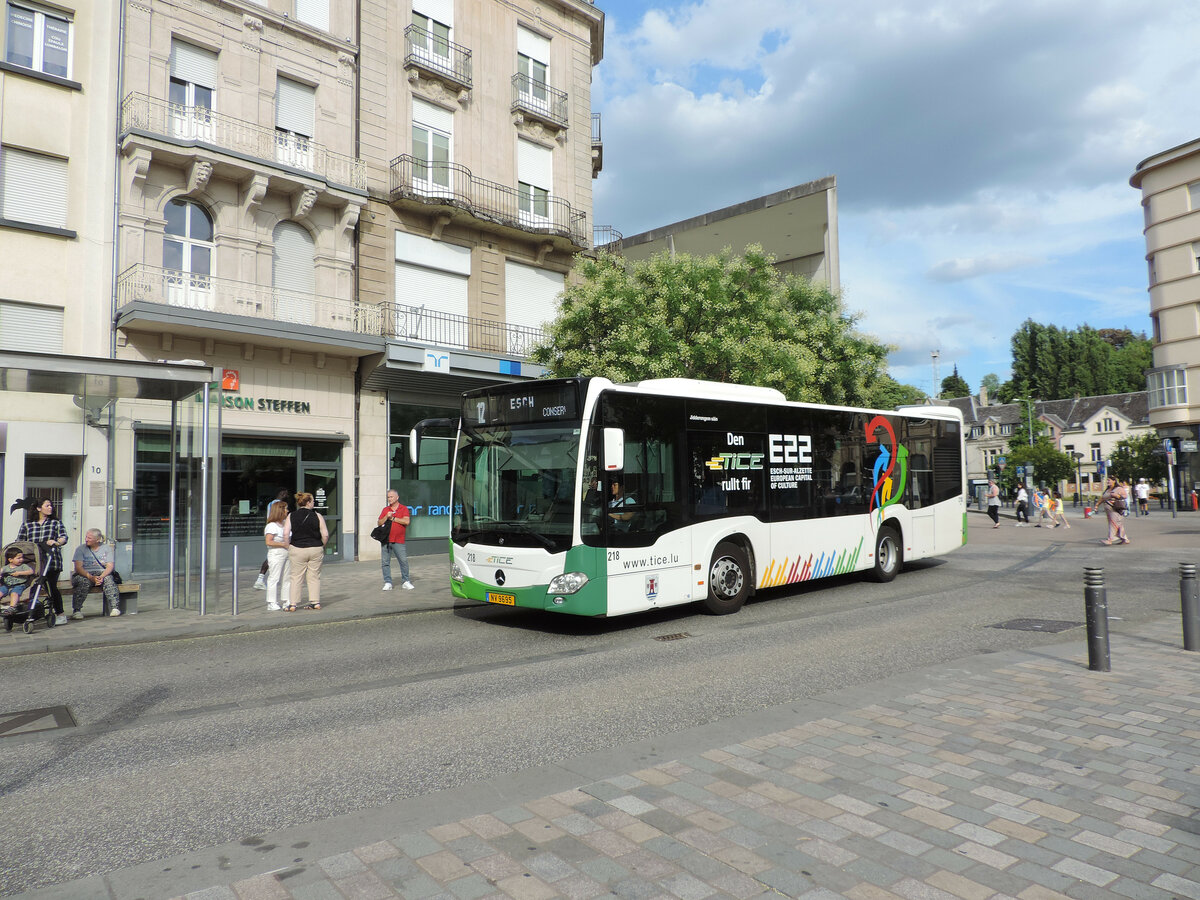 Esch sur Alzette - 30. Juli 2022 : Citaro K C2 Nr 218 auf der Linie 12 im Einsatz.