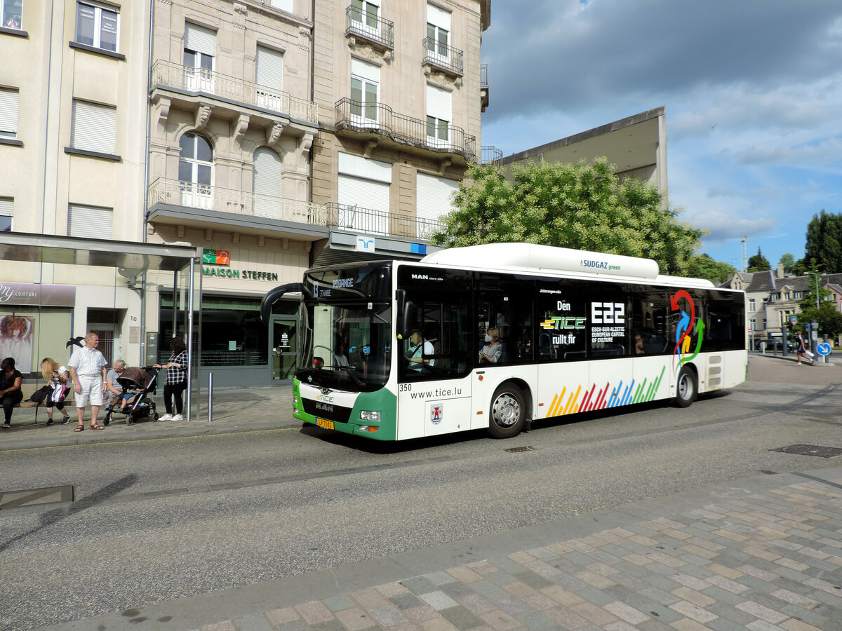 Esch sur Alzette - 30. Juli 2022 : Lion's City CNG Nr 350 auf der Linie 13 im Einsatz.