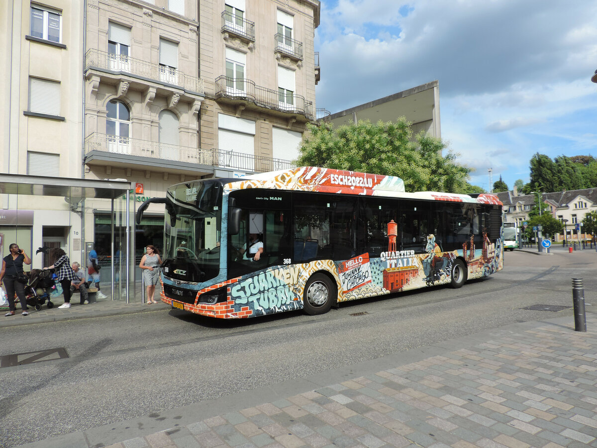 Esch sur Alzette - 30. Juli 2022 : New Lion's City 12 CNG Nr 365 auf der Linie 13 im Einsatz.