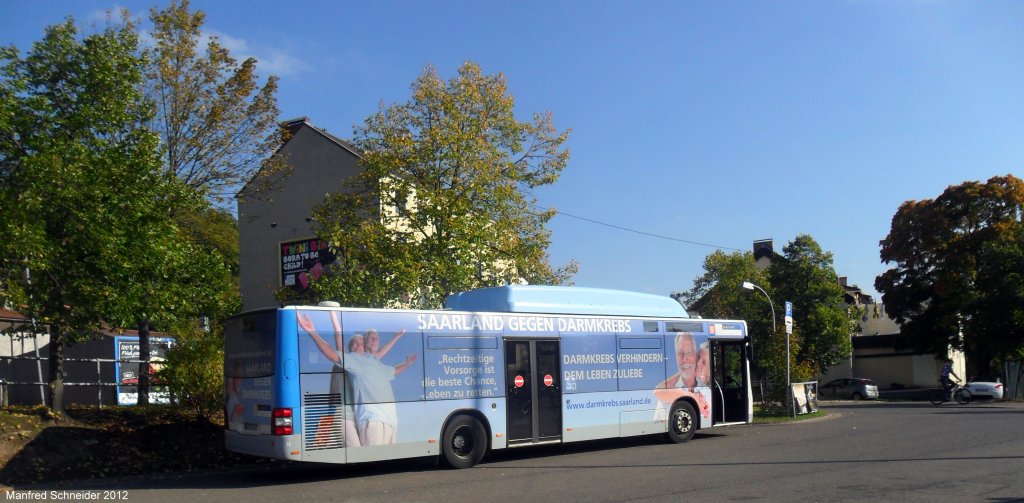 MAN Gas Bus von Saarbahn und Bus an der Haltestelle Brebach Bahnhof.Das Bild habe ich am 15.03.2013 gemacht.Der Bus war leider nicht gereinigt. Manfred Schneider