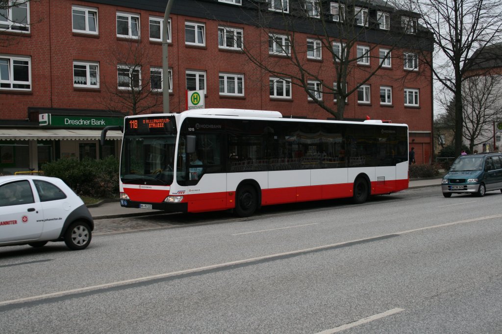 Wagen 1015 am 26.03 in bramfeld, dorfplatz gerade angekommen aus Wandsbek Gartenstadt zur weiterfahrt nach Kellinghusenstr auf der Linie 118. Daniel Schlatermund