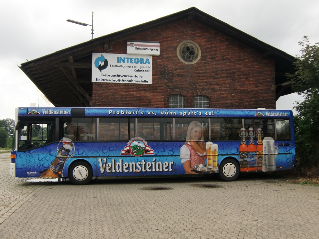 Am 03.08.2010 stand dieser Mercedes-Benz O 405 am alten Güterschuppen in Kulmbach.
