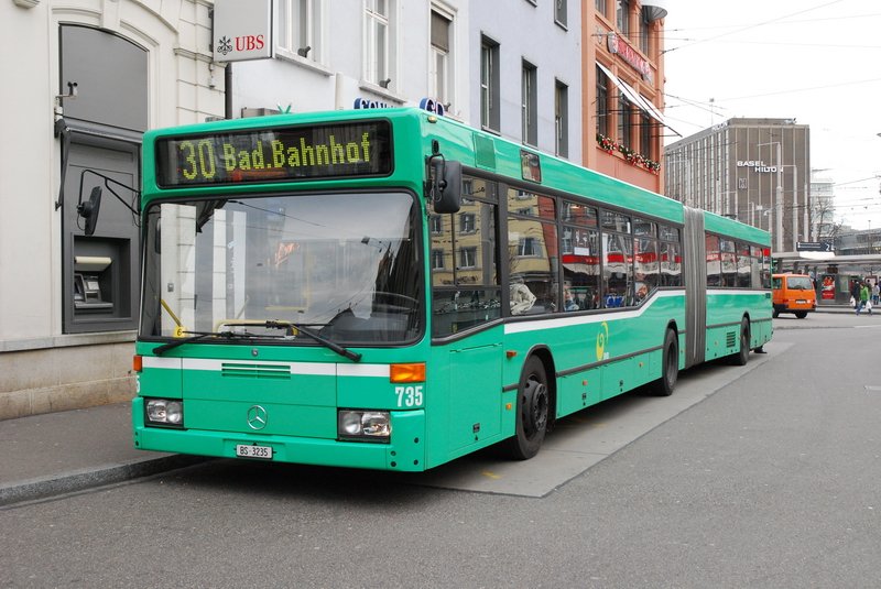BS 3235 - Der Mercedes-Gelenkbus der BVB der Linie 30, verkehrt zwischen Bahnhof SBB (hier im Bild) und Badischer Bahnhof. Der Bus hat 159 Plätze anzubieten. 11.12.2006 Jürgen Walter