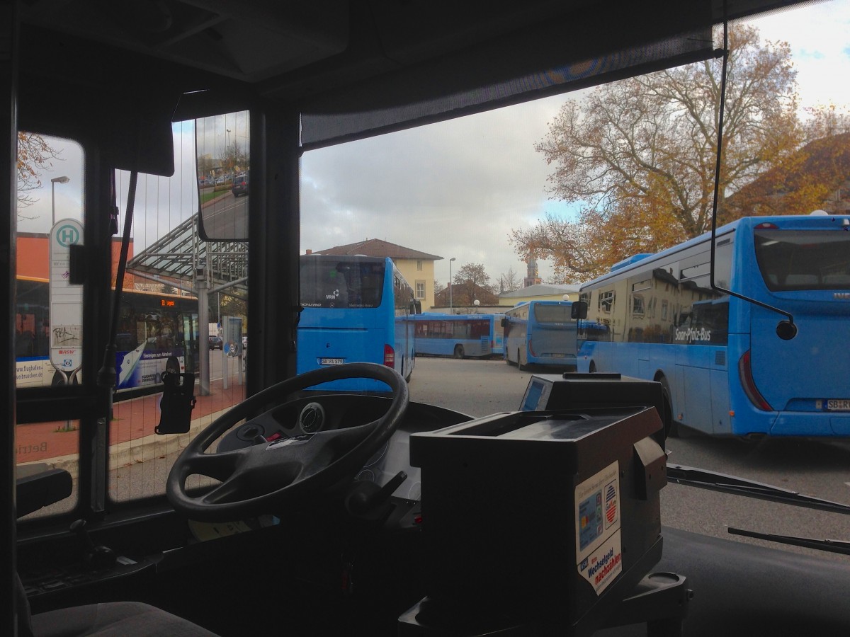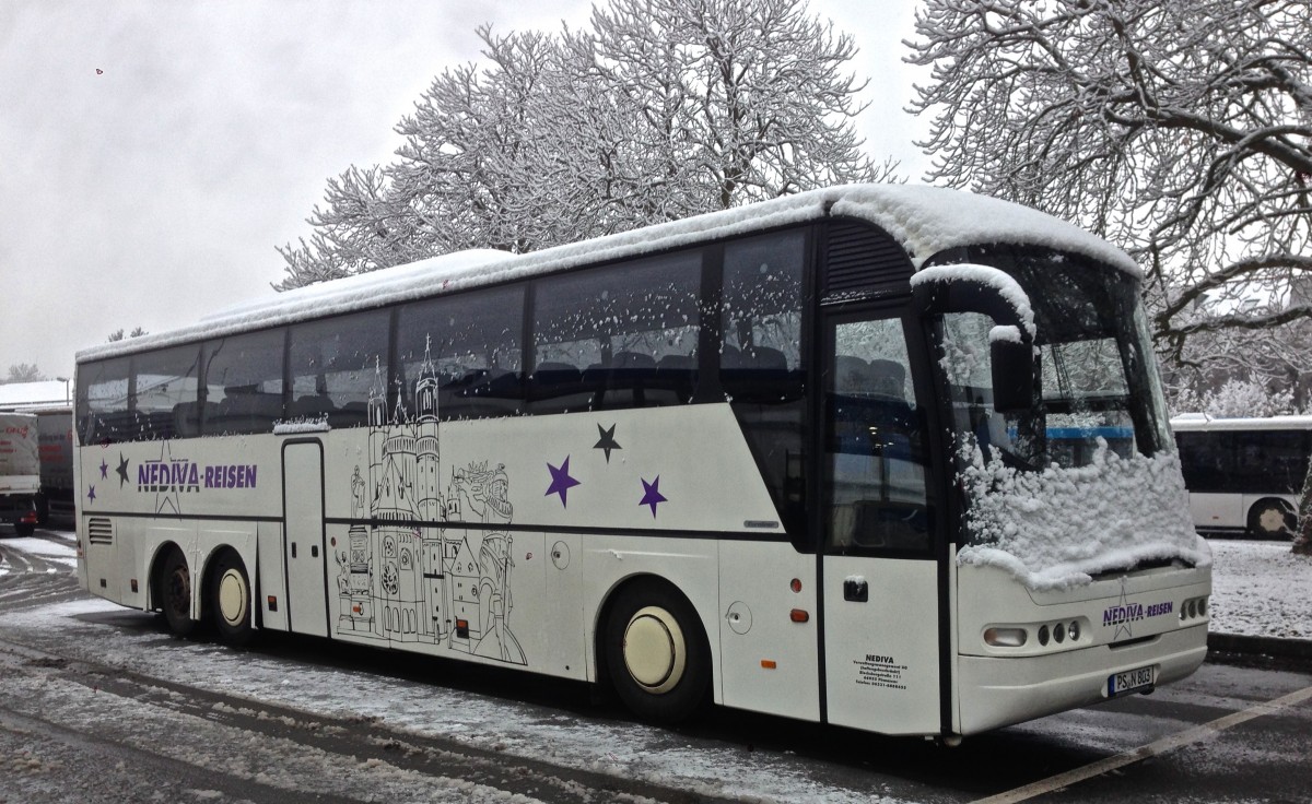 Der älteste und der neueste Saar-Pfalz-Bus der Betriebsstelle Kaiserslautern: Setra S315 NF Baujahr 1999 und Citaro C2 Ü Baujahr 2014 (KL-RV 791 und SB-RV 343) beim ersten Schnee 2014 in Kaiserslautern (03.12.2014) Felix Schäfer