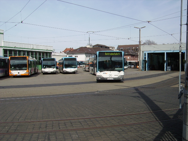 Ein paar Mercedes Benz Citaro am 03.04.11 in Heidelberg Betriebshof durch den Zaun fotografiert