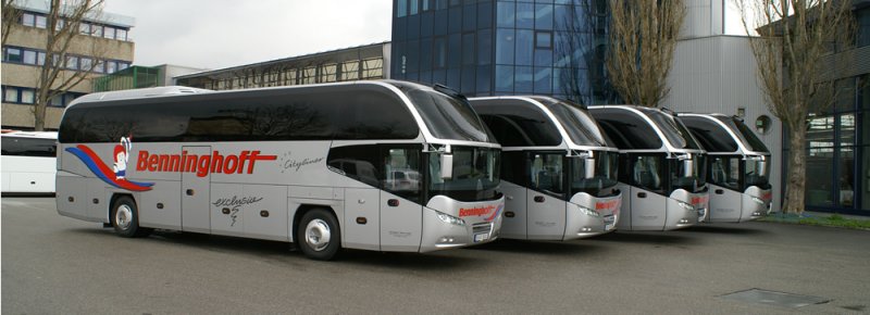 4 neue Cityliner für Benninghoff Reisen bei der Auslieferung im Neoplan Werk in Pilsting
