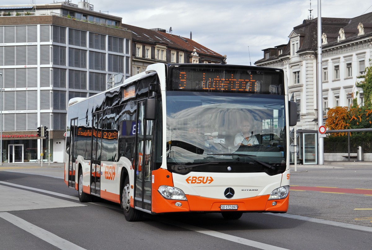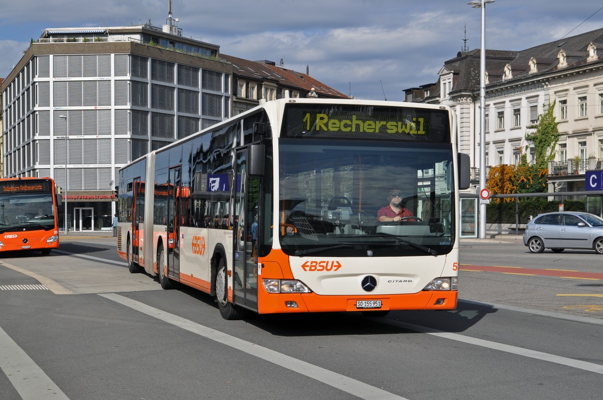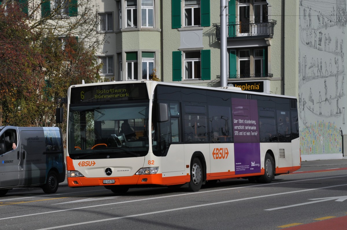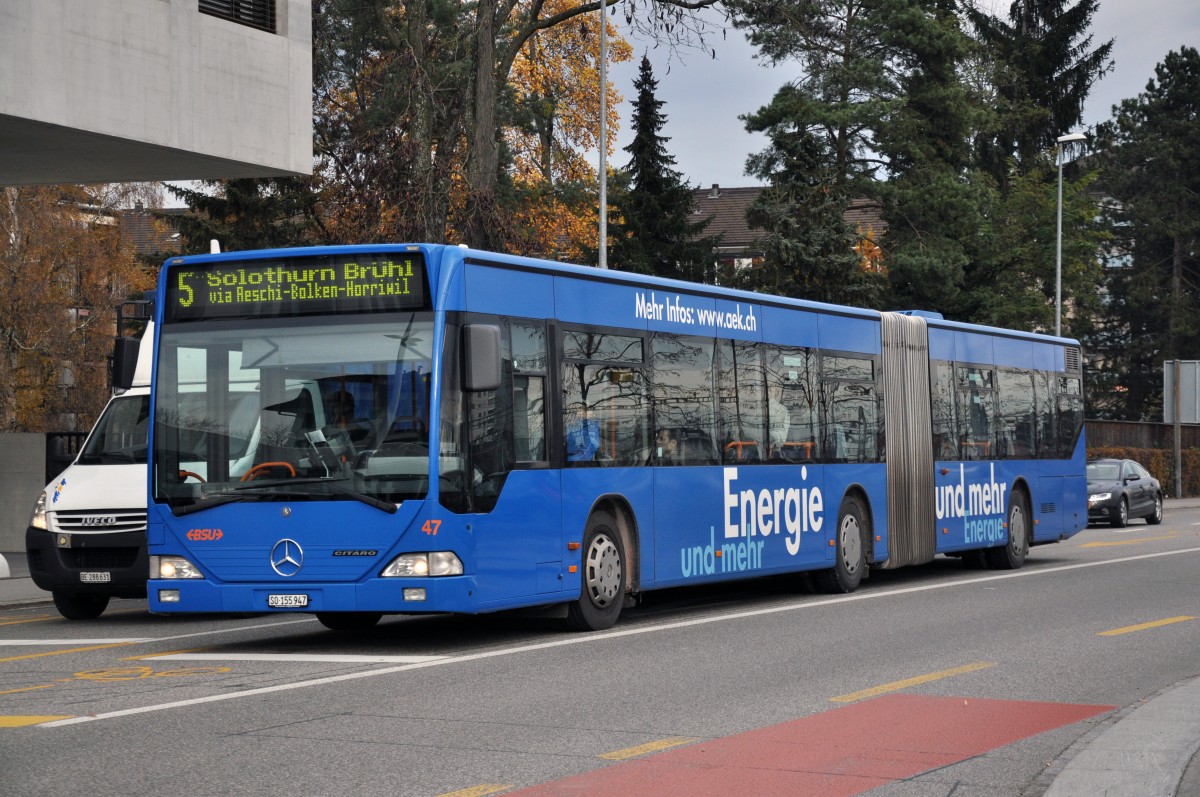 Mercedes Citaro mit der Betriebsnummer 47 und der Vollwerbung Energie und mehr auf der Linie 5 beim Bahnhof Soloturn. Die Aufnahme stammt vom 08.11.2012. Markus Wagner