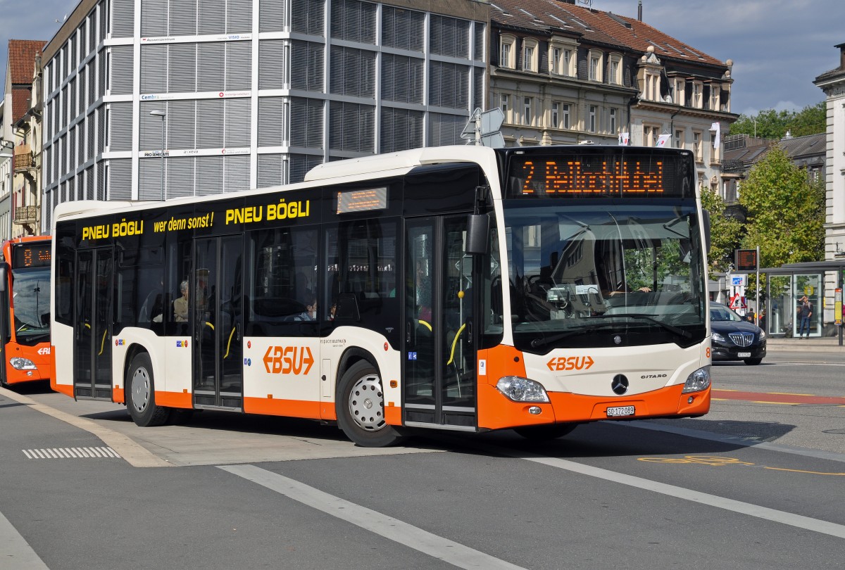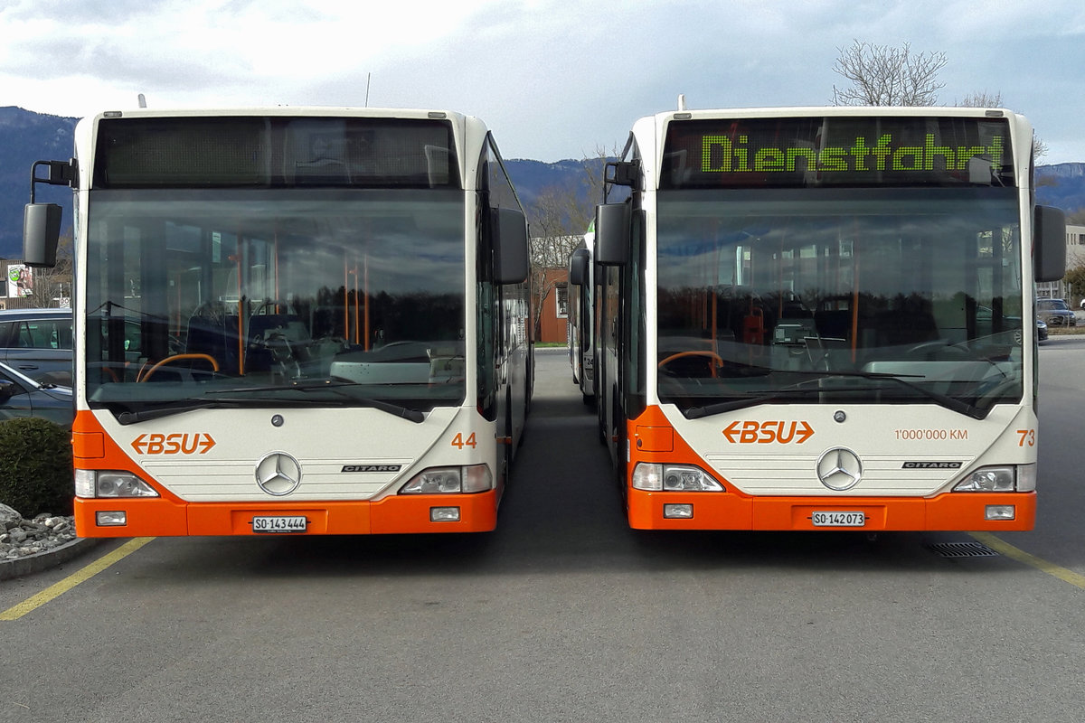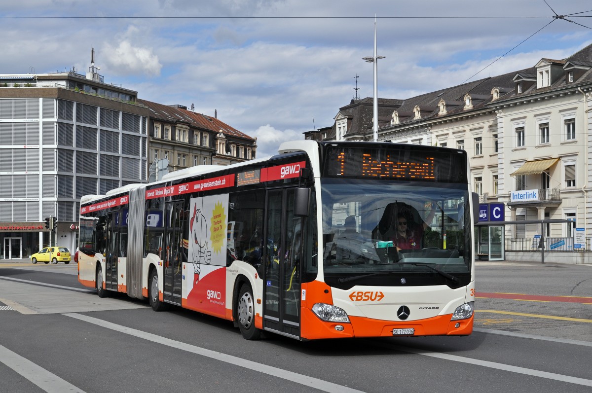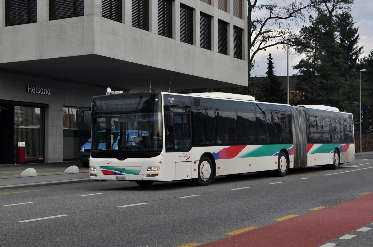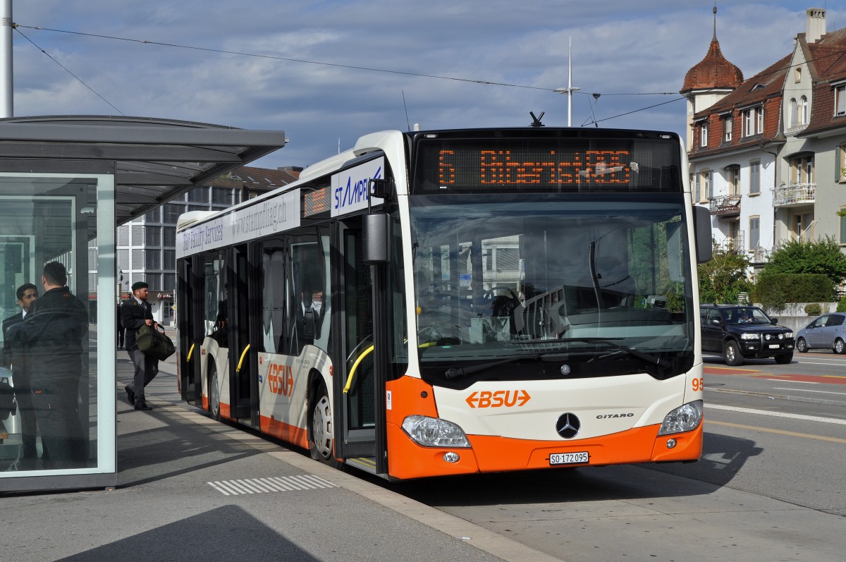 Mercedes Citaro mit der Betriebsnummer 47 und der Vollwerbung Energie und mehr auf der Linie 5 beim Bahnhof Soloturn. Die Aufnahme stammt vom 08.11.2012. Markus Wagner