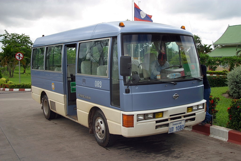 Kleinbus, Typ Nissan Civilian mit Nr. 089, eingesetzt als Pendelbus über die Mekongbrücke in der thailändischen Grenzstation Nong Khai am 16.Mai 2007. Karl Seltenhammer