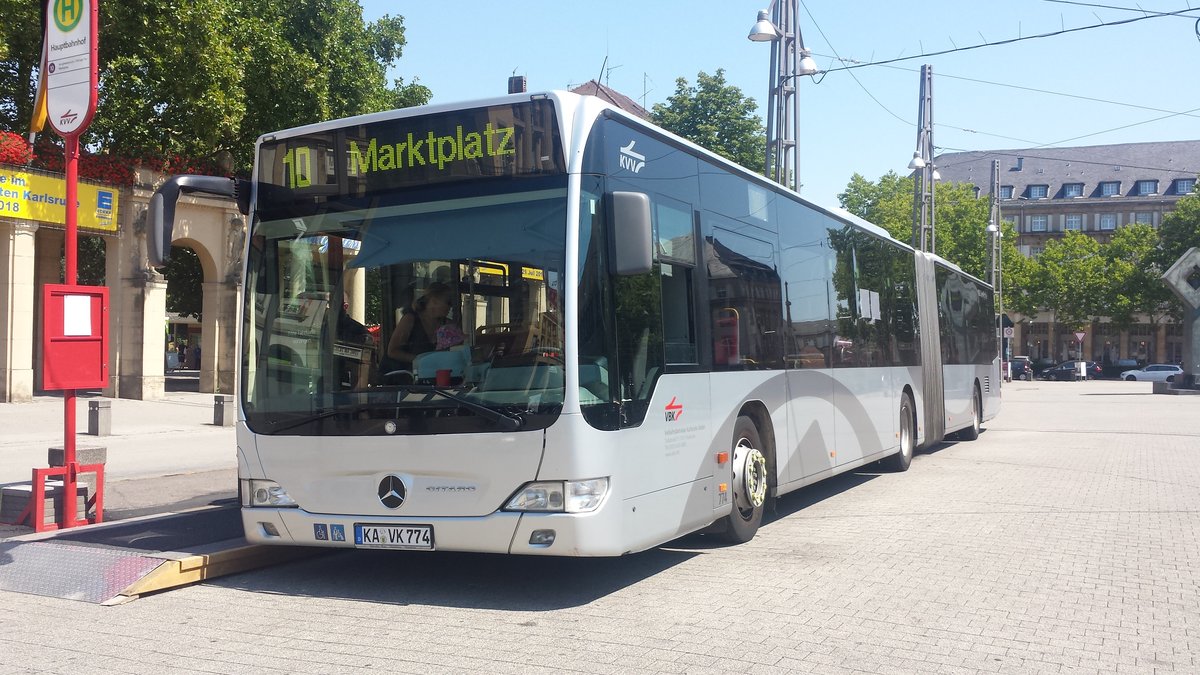 Hier ist der KA VK 774 der VBK auf der Buslinie 10 zum Marktplatz unterwegs. Seit dem 10.06.2018 fährt die Dauer SEV Linie 10 zum Marktplatz in der Karlsruher Innenstadt. Gesichtet am 27.07.2018 am Hauptbahnhof in Karlsruhe. KVV_Bilder_Doku