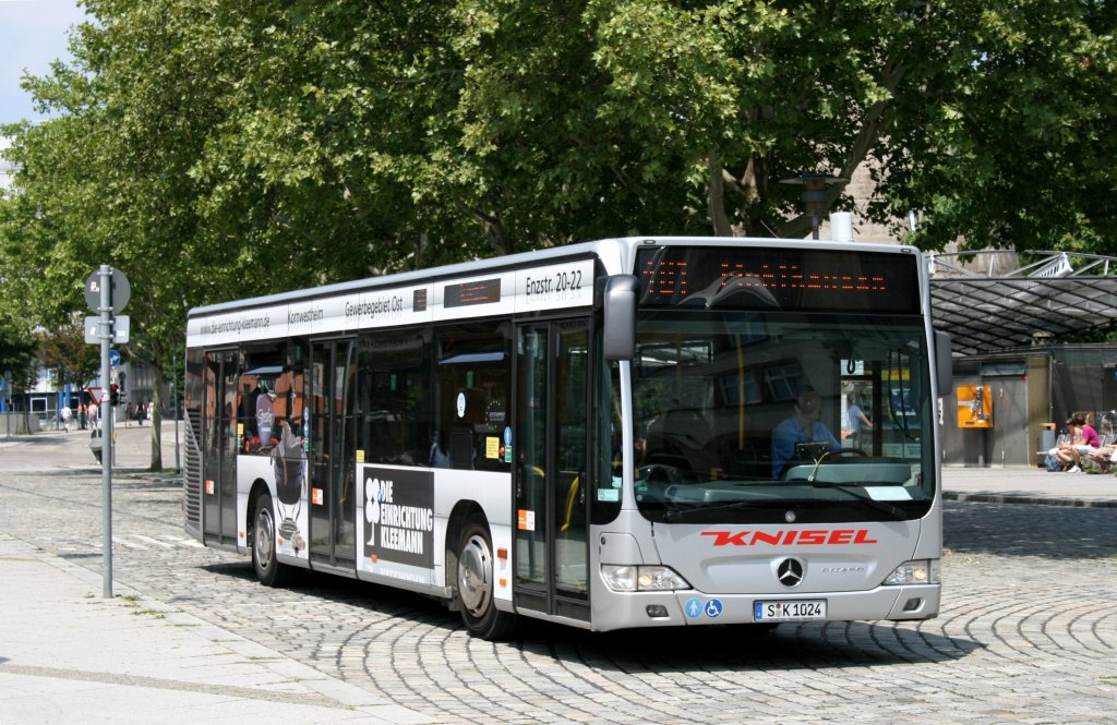 Knisel (S K 1024) macht Werbung füe Einrichtung Kleemann. Stuttgart Feuerbach Bahnhof, 28.6.2010.
