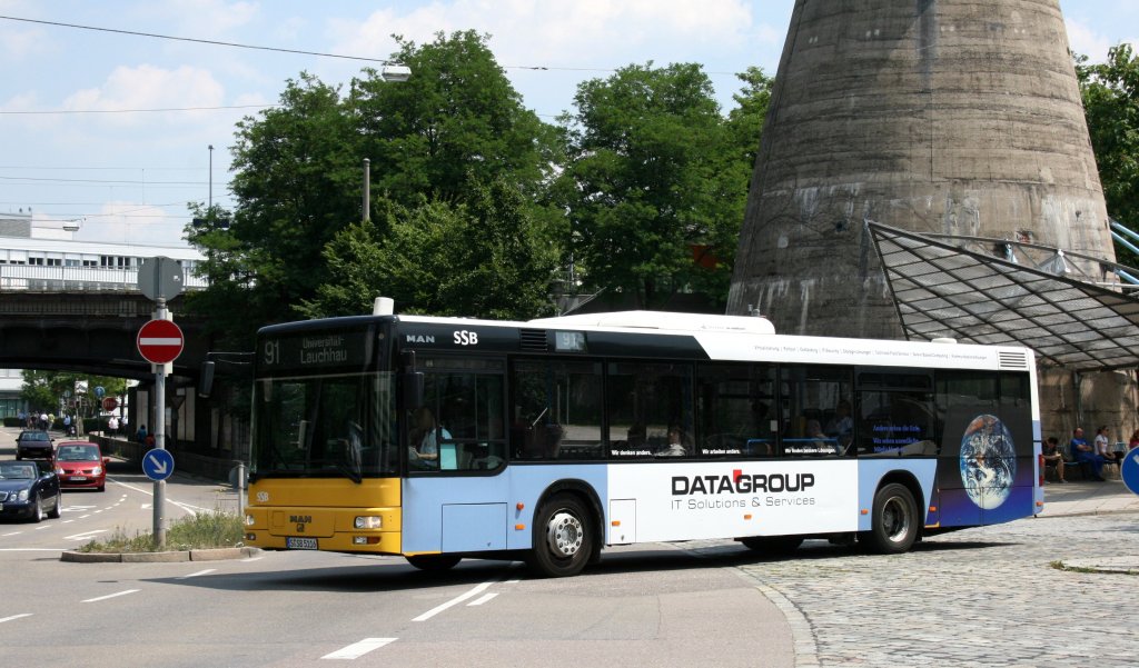 SSB (S SB 5116) am Bahnhof Stuttgart Feuerbach, 28.6.2010.. Der Bus wirbt für Datagroup.