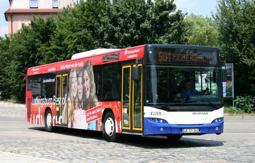 WEG (LB CX 261) mit Werbung für die Kreissparkasse Ludwigsburg. Stuttgart Feuerbach Bahnhof, 28.6.2010.