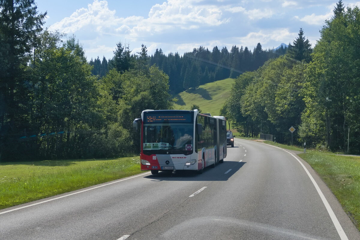Mercedes-Benz Citaro 2. Generation von Süsser (BB-S 6080) als Schienenersatzverkehr an der B2 in Krün, zwischen Garmisch-Partenkirchen und Mittenwald. Aufgenommen 4.8.2022. stbtram