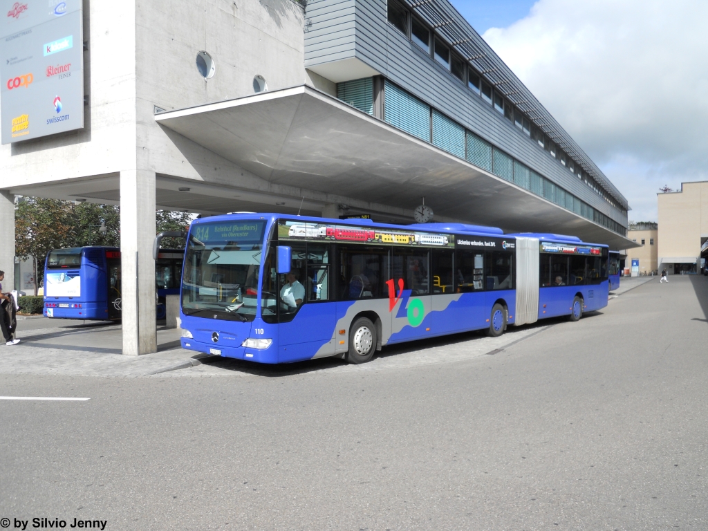 VZO Nr. 110 (Mercedes CitaroII O530G) am 16.8.2011 beim Bhf. Uster. In Uster existieren 4 Ortsbuslinien. Diese werden jeweils mit den Überlandlinien verknüpft, so dass auch die überdimensionierten Gelenkbusse in der Stadt Uster fahren. Silvio Jenny