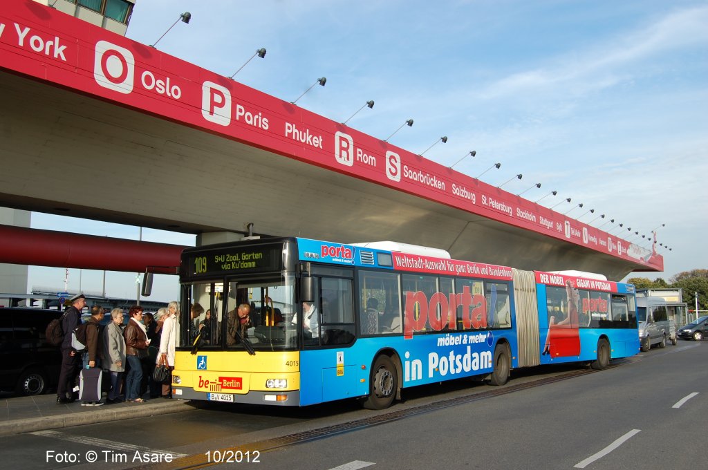 Scania Citywide LFA, BVG Gelenkbus verstärkt die Busflotte in Berlin um 156 Fahrzeuge. Hier am Flughafen Tegel auf der Linie X 9 am 04.05.2015. Es können bis zu 99 Fahrgäste bei einem 18 Meter langen Bus befördert werden. M. Schiebel