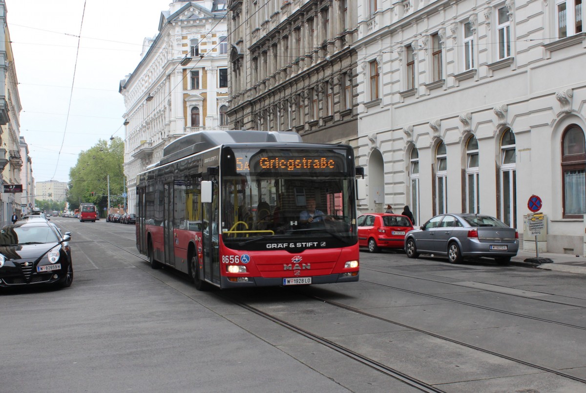 Wien Wiener Linien Buslinie 5A (MAN/Gräf&Stift NL 273 T3 8656) Rauscherstraße / Bäuerlegasse am 2. Mai 2015.