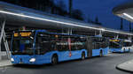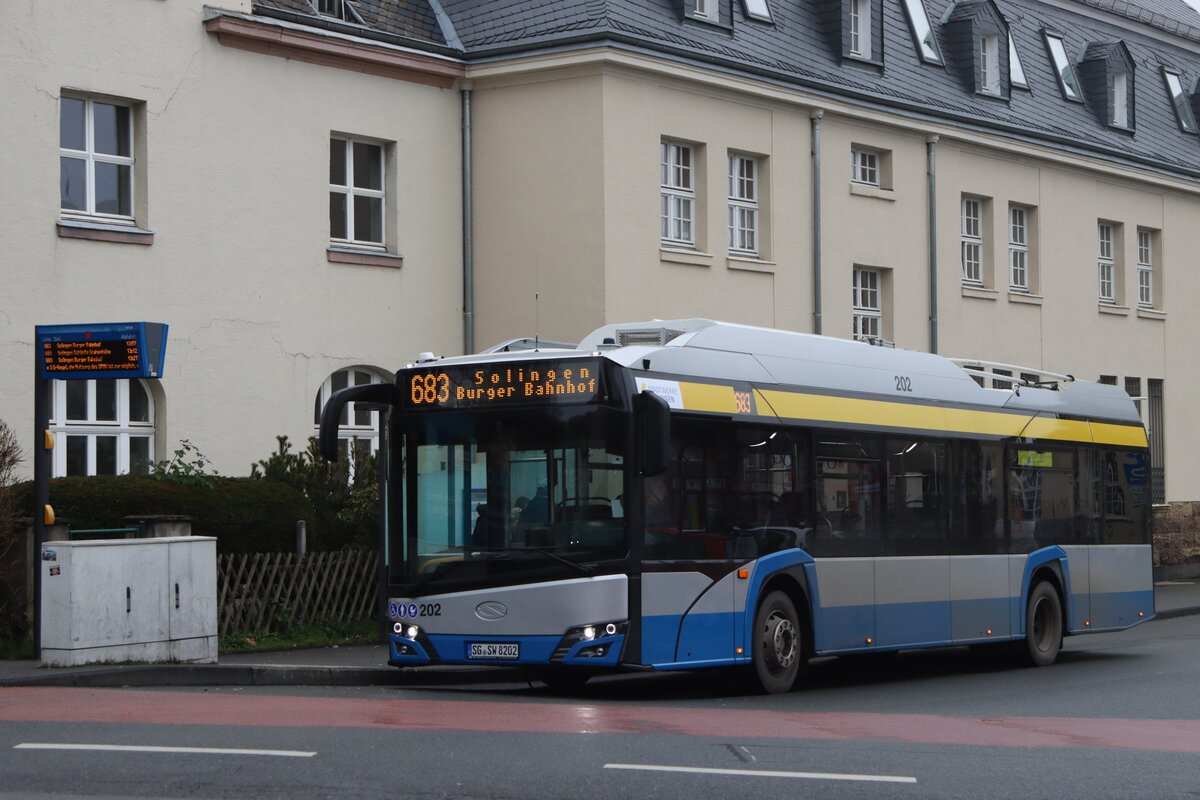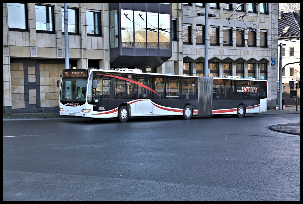 Ein Mercedes Benz O 530 G II Gelenkbus der Fa. Schiwy GmbH biegt hier am 10.1.2022 um 13.47 Uhr in den Busbahnhof am Hauptbahnhof Solingen ein. Gerd Hahn