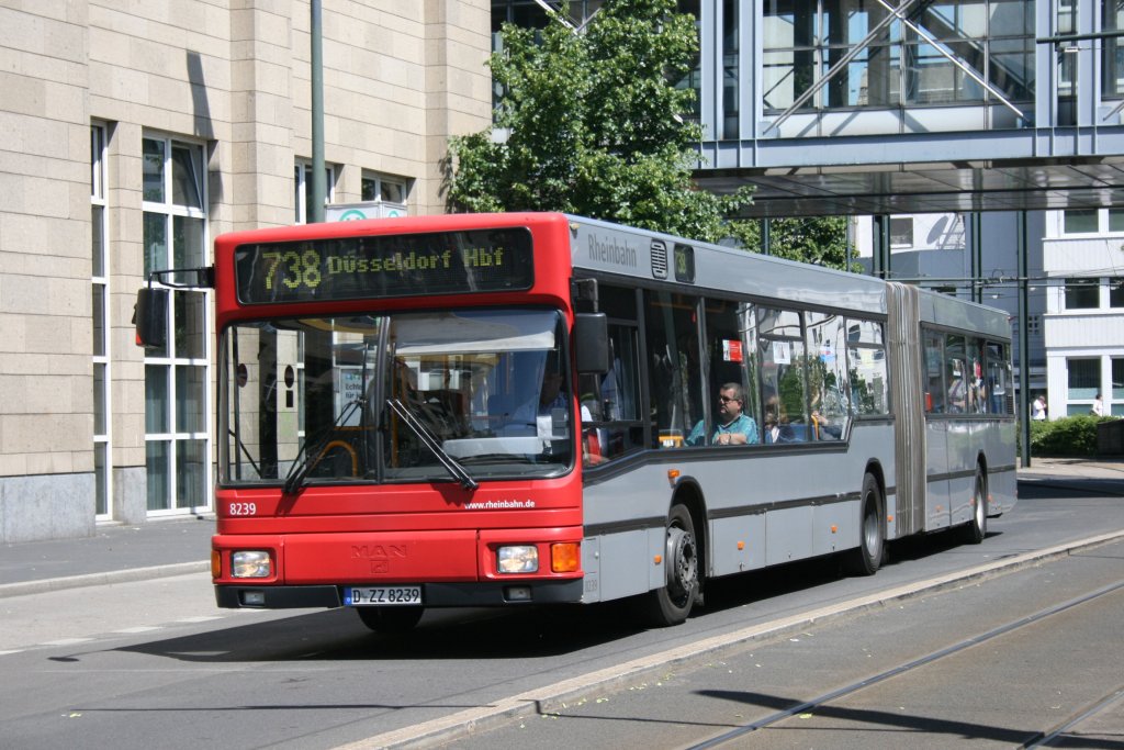 MAN NG 262 (Wagennummer 8228, Kfz-Kennzeichen D-ZT 8228, Baujahr 1997) der Rheinbahn AG Düsseldorf. Der Bus ist im Einsatz als Linie 722, zwischen Düsseldorf-Eller S-Bahnhof und Düsseldorf Messe, Congress Center. Aufgenommen am 28.08.2010. Ort: Düsseldorf Hauptbahnhof. Nicolas Borkelmans