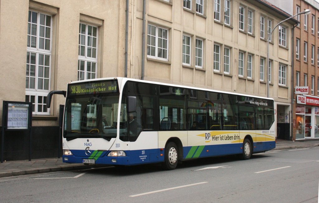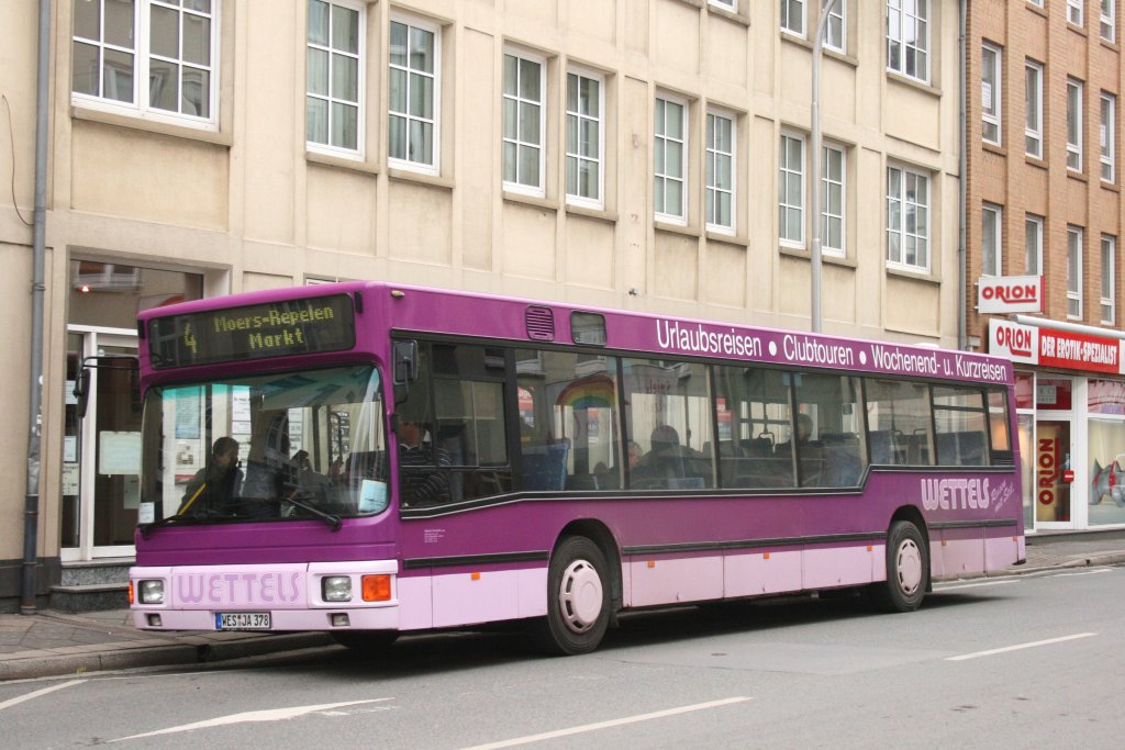 Mercedes-Benz O 405 von VZ-Reisen aus Moers. Hierbei handelt es sich um ein ehemaliges Fahrzeug des Unternehmens "Hippe", welcher damals den Sub der NIAG bediente. In der Übergangszeit von Hippe zu VZ-Reisen setzte die Fahrschule Schwier dieses Fahrzeug als Fahrschulwagen ein. Die Aufnahme entstand im April 2012. Kevin Kudell