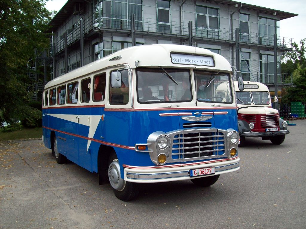 Ikarus 55.51 Baujahr 1962 von Regiobus Mittelsachsen als Sonderfahrt "Oldtimerbus trifft Fahrzeuggeschichte" Verbindet der Uberlandbus auf einer Rundfahrt das Enduro-Museum Zschopau, das Fahrzeugmuseum Chemnitz, Schloss Augustusburg und zurück nach Zschopau zum Schloss Wildeck, hier die erste Tour am 5. Mai 2024 unterhalb von Schloss Augustusburg. Sven Uhlmann