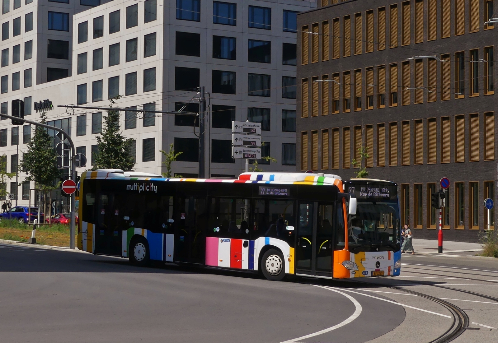 EF 1229, Mercedes Benz Citaro, vom VDL, an der neuen Straßenbahn Linie auf der Cloche d’Or in der Stadt Luxemburg unterwegs. 08.07.2024 De Rond Hans und Jeanny