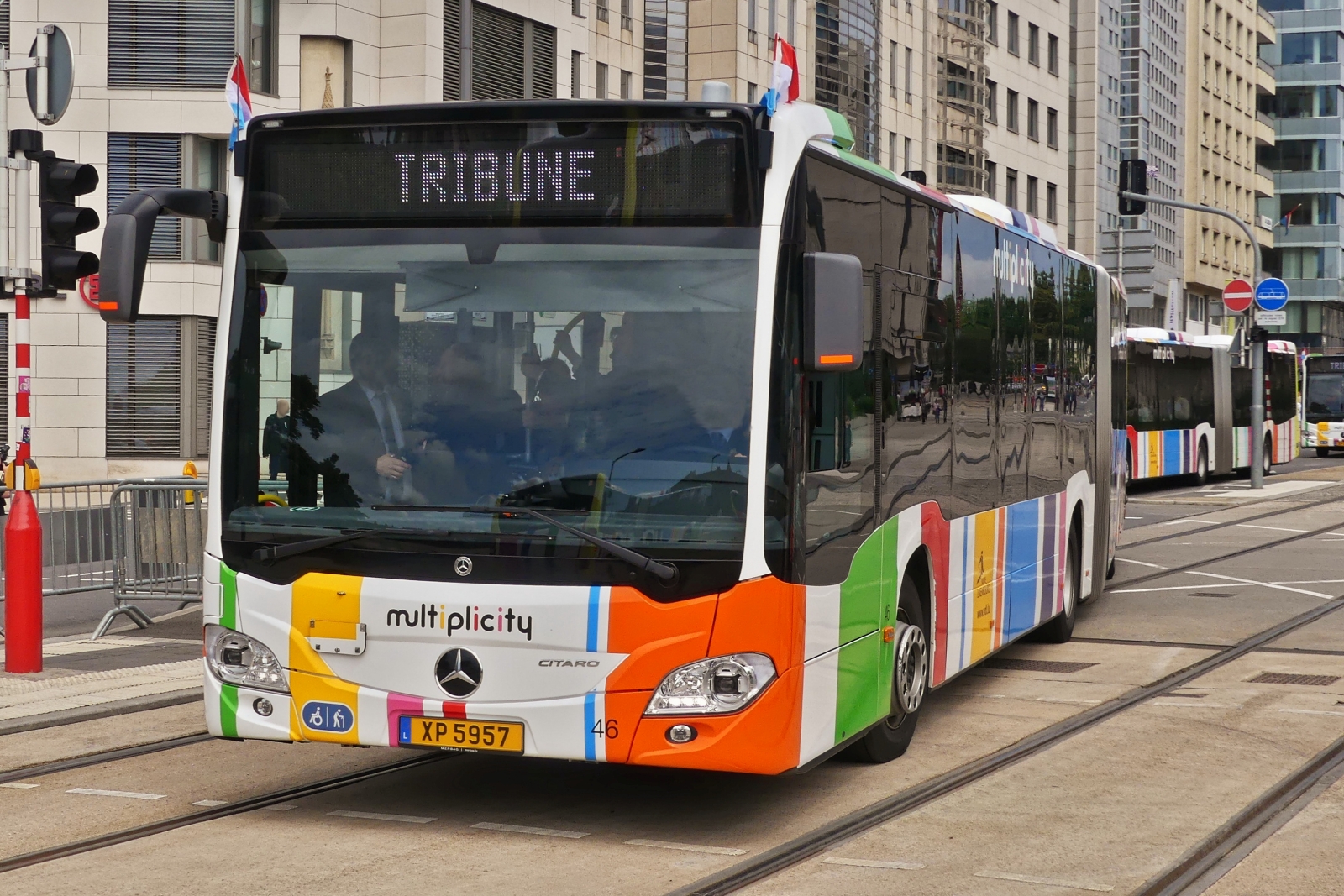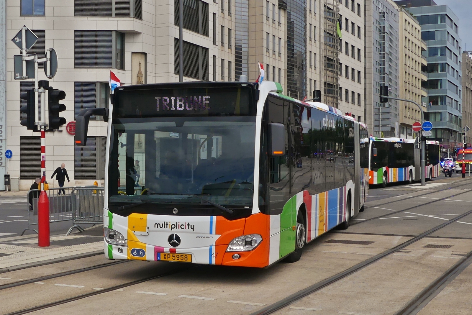 XP 5956 Mercedes Benz Citaro, vom VDL, auf dem Weg zur Ehrentribüne, zum National Feiertag in der Stadt Luxemburg. 23.06.2024 De Rond Hans und Jeanny