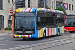 QE 8821, Mercedes Benz eCitaro, vom CFL, in der neuen Farbgebung, an seiner Endhaltestelle Roud Bréck – Pafendall in der Stadt Luxemburg. 07.2025 De Rond Hans und Jeanny