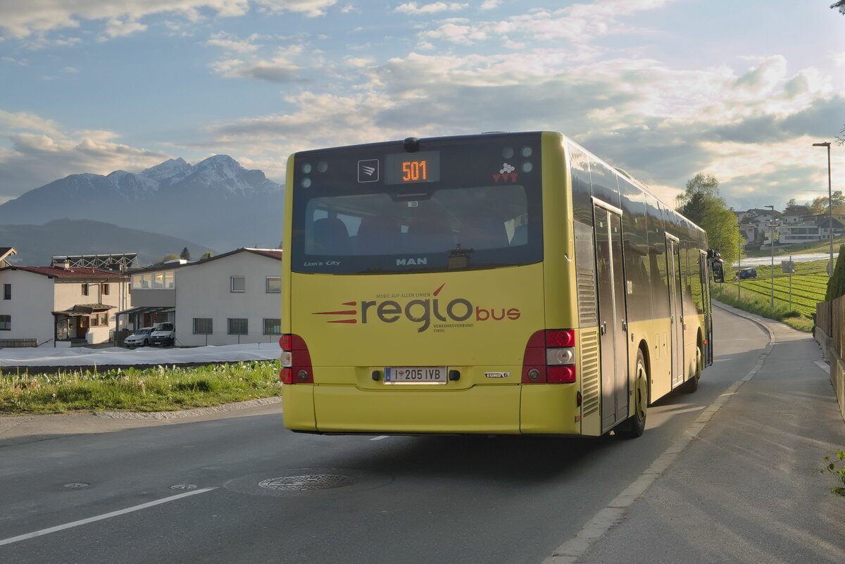 MAN Lion's City von Innbus Regionalverkehr/Innsbrucker Verkehrsbetriebe (Bus Nr. 200) als Linie 501 an der Haltestelle Thaur Auweg. Aufgenommen 27.4.2022. stbtram