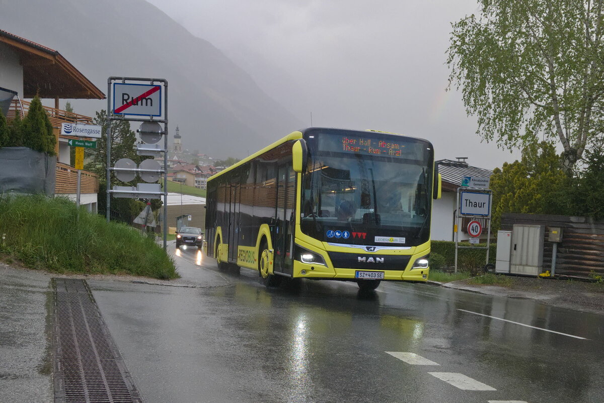 MAN Lion's City von Innbus Regionalverkehr/Innsbrucker Verkehrsbetriebe (Bus Nr. 209) als Linie 501 bei der Haltestelle Thaur Kinzachhof. Aufgenommen 3.5.2022. stbtram