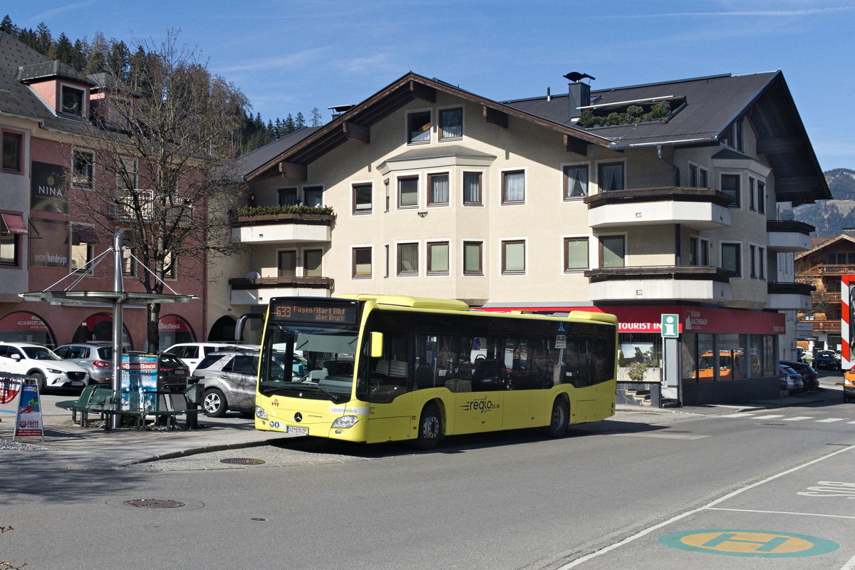 Mercedes-Benz O 530 III (Citaro 2. Generation) von Ledermair (SZ-610ZP) als Linie 633 an der Haltestelle Fügen Gemeindeamt/Apotheke. Aufgenommen 12.3.2020. stbtram