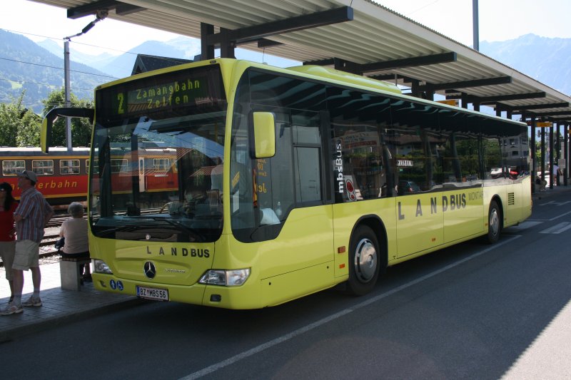 Landbus Montafon / mbsBUS Nr.56 (Citaro Facelift) am 25.7.2008 am Bahnhof Schruns.